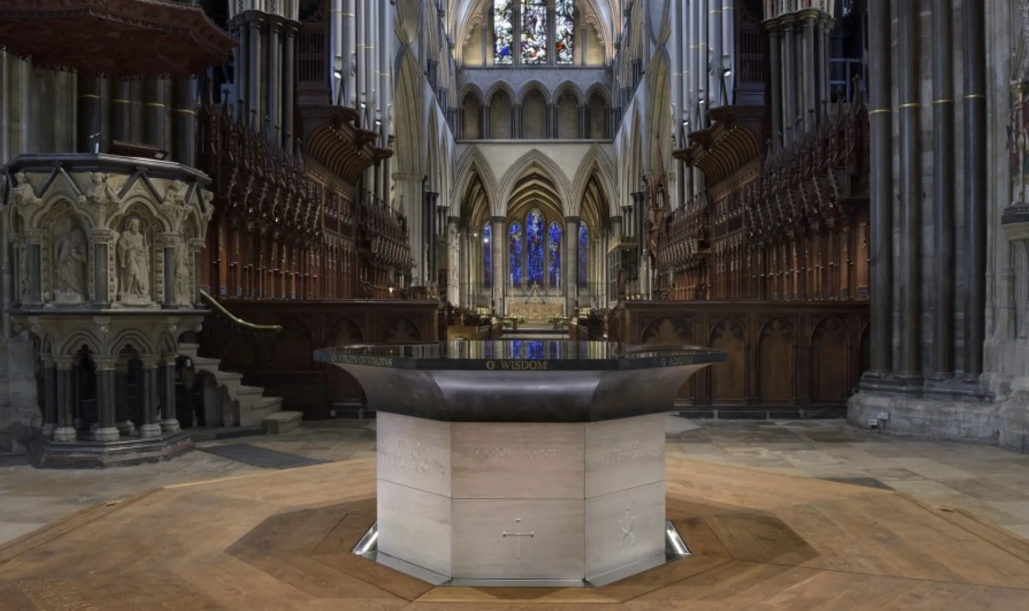 The Spire Crossing altar is octagonal with carved texts on each of the facets, taken from the Gospel according to St Matthew.