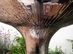An example of the Coanda effect in a private garden in south London. The water is allowed to spill over the edge of a bowl and adheres to its underside, converging towards the central trunk. The piece is 1.9 metres high and fabricated from cast, spun and rolled mirror-polished stainless steel.