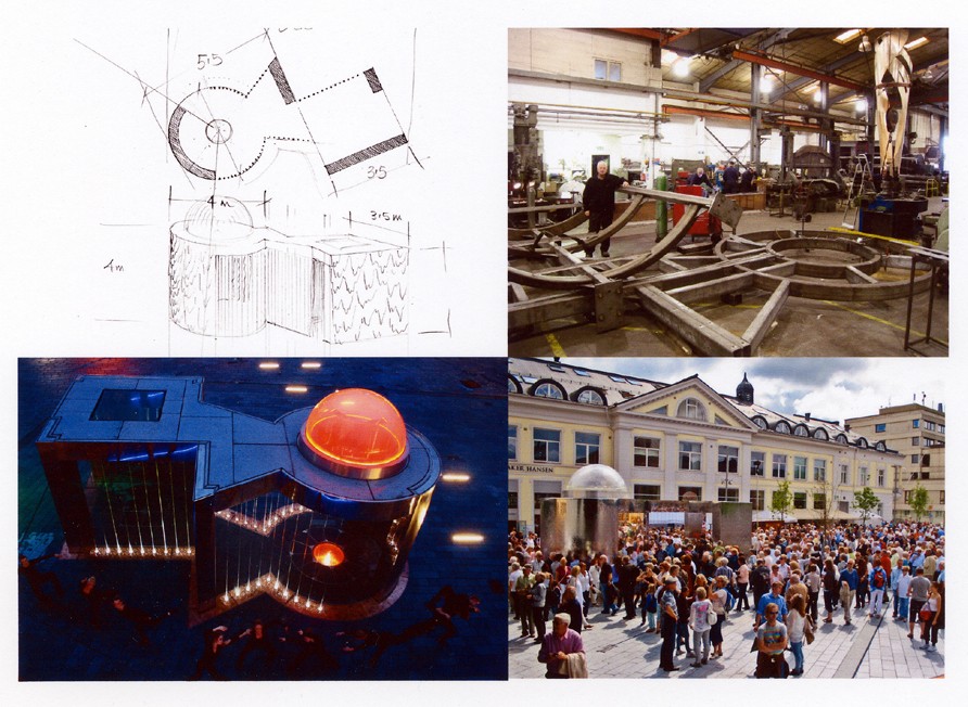 William Pye was one of three exhibitors at the Royal British Society of Sculptors in Old Brompton Road, London, to present a project in its various stages in the form of drawings, maquettes, photos, videos and publications. The chosen project was Vannpaviljong (Water Pavilion) which was unveiled in 2011 in the town of Drammen in Norway.