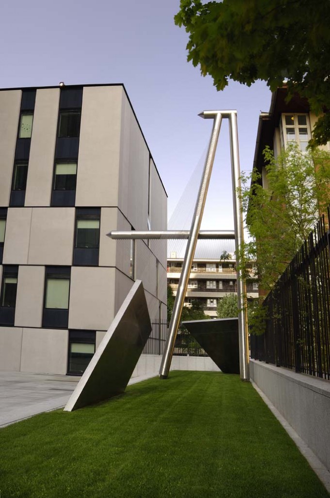I returned to the site of Nat West’s former offices on Pentonville Road – now The Blackstone Group’s independent student accommodation hall ‘Nido’ – on 22 April to witness the installation of the new ‘KX200’ sculpture. The new sculpture is made entirely of stainless steel, dispensing with the brick plinths previously used in the 1970s. The installation has been secured by cables attached to large stainless steel ‘sails’.