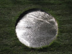 The hardware to harness the idea consists of an elliptical stainless steel tray, 4 metres long and 1.5 metres wide, set just below the level of the surrounding grass.