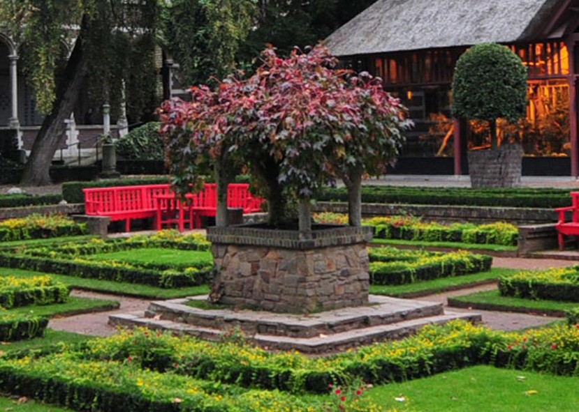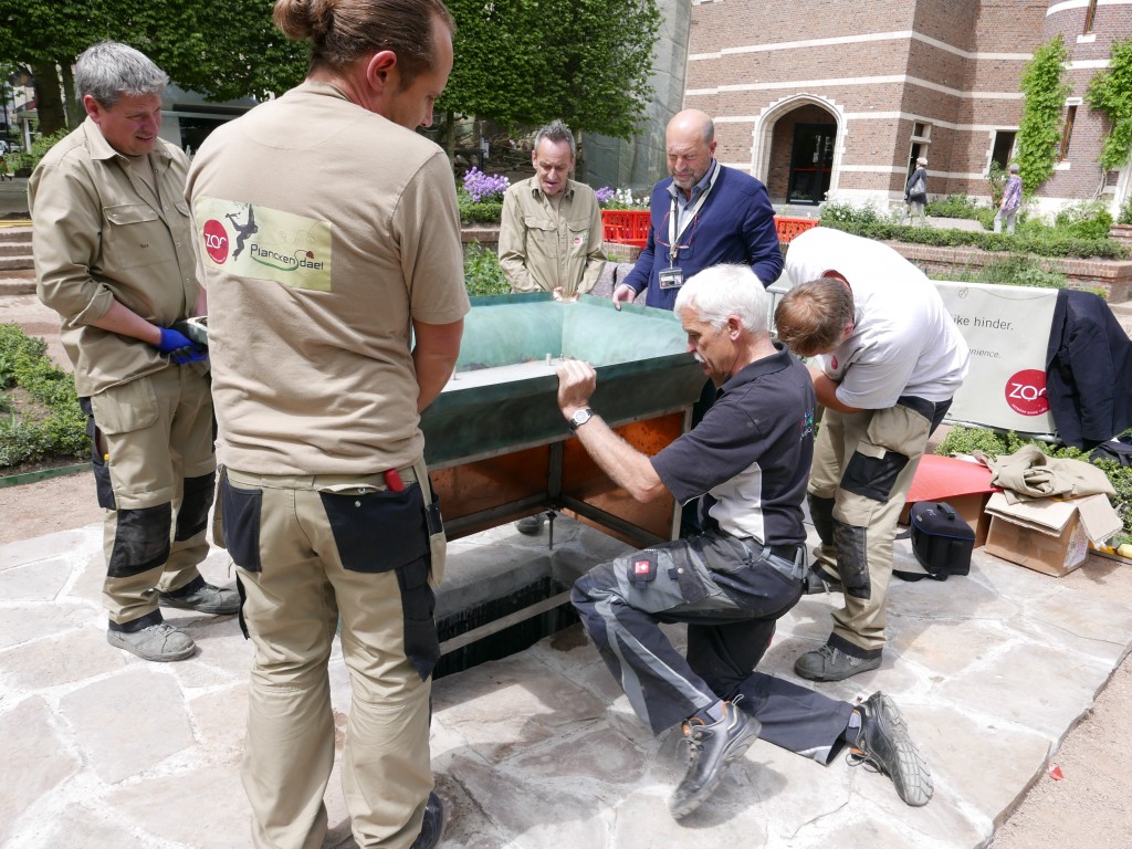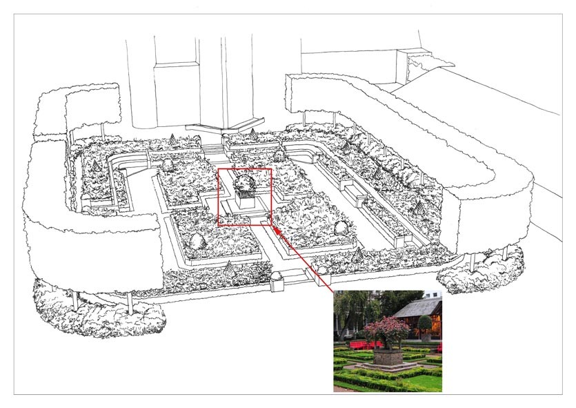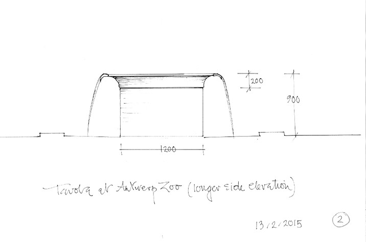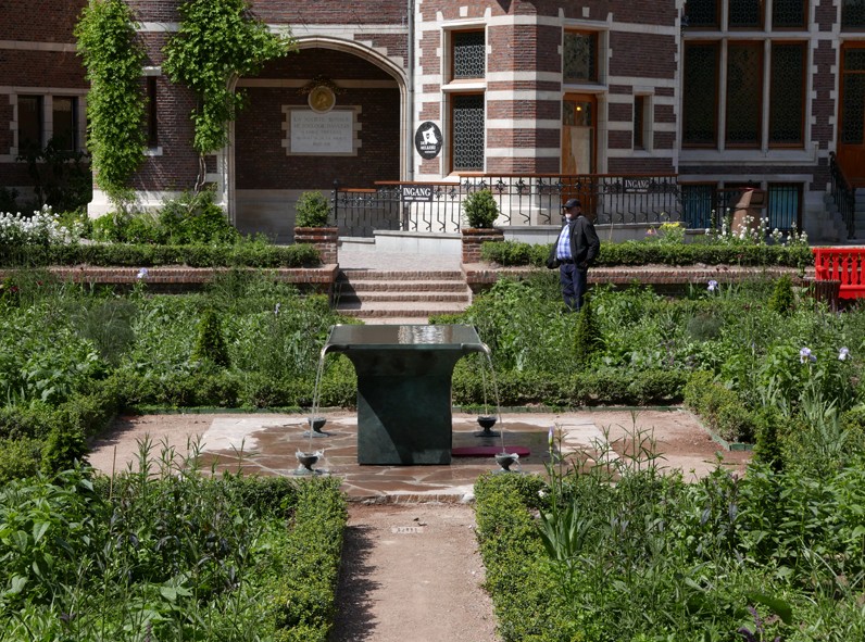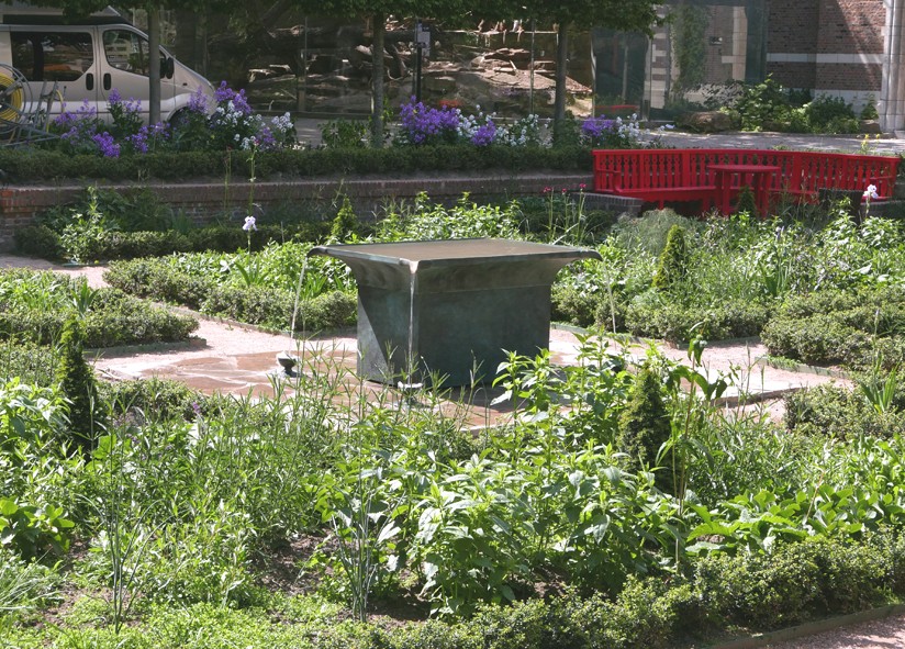 Located in the centre of the renovated Flemish Garden of Antwerp Zoo, this version of Tavola is closely integrated into the new layout at the centre of the sunken garden. The sound of water helps to mask the sounds of the city beyond.