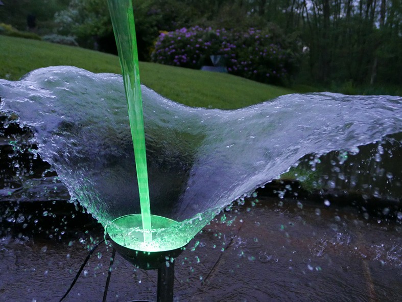 LED lights are set below the cups to provide a programme of colour changing lighting at night.