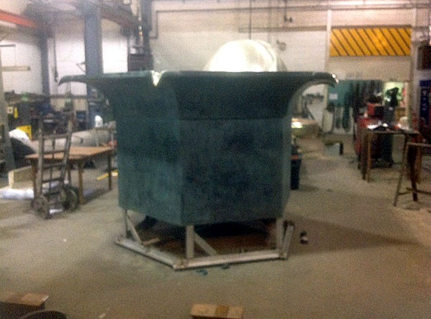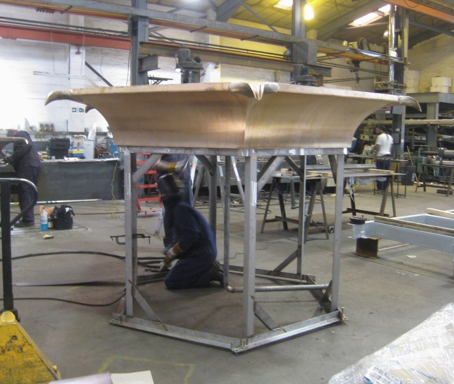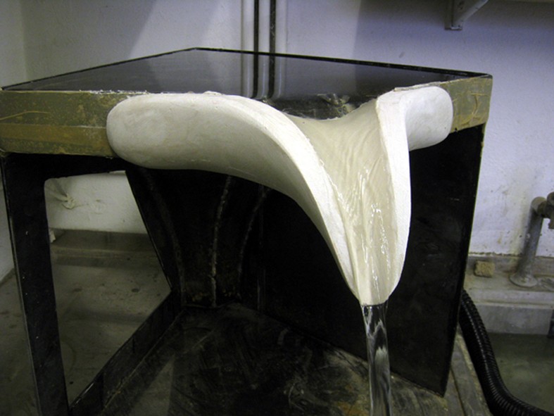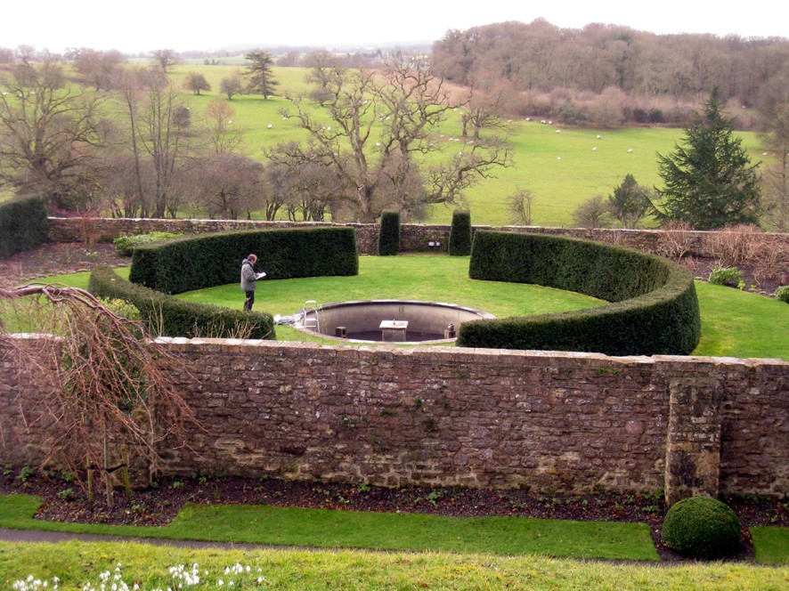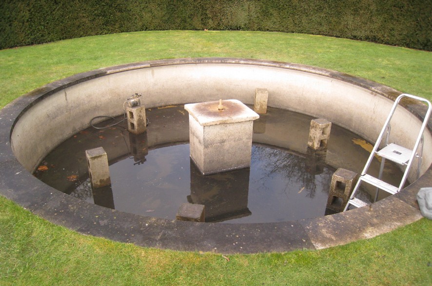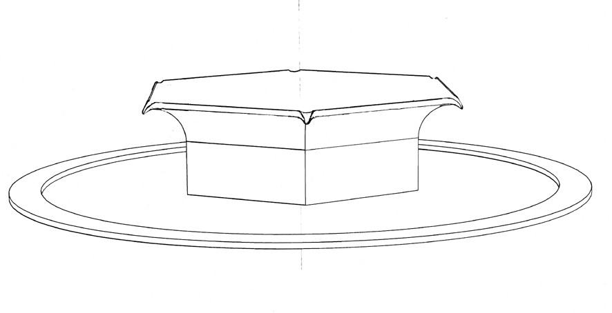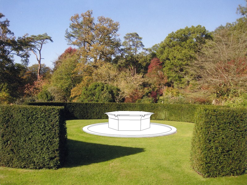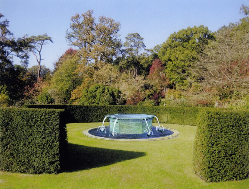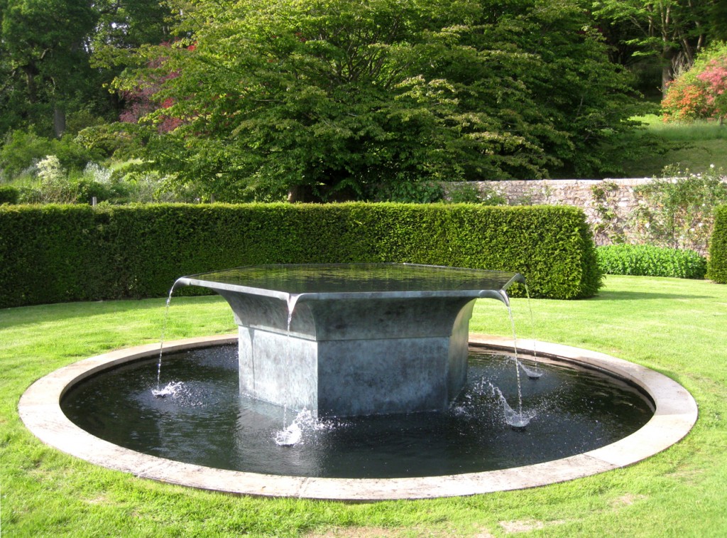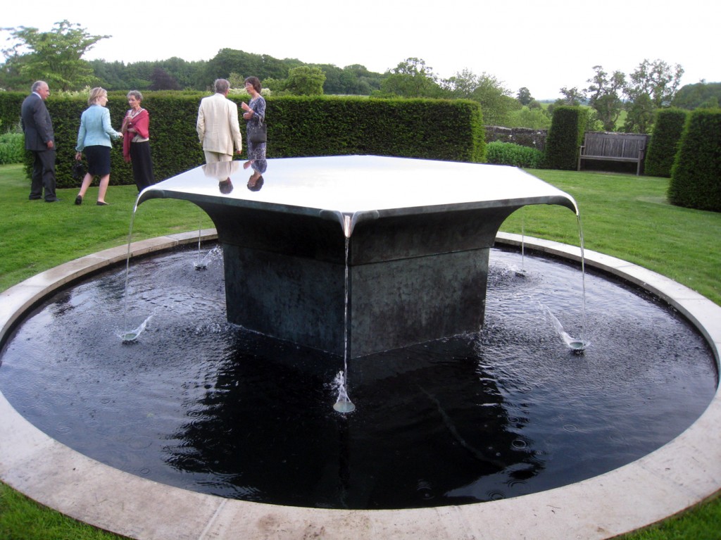 For the circular pool in the garden of the Fonthill Estate in Wiltshire I made a new version of my ‘Tavola’ series, where vessels are filled to a precisely levelled brim. Previous versions have been square or rectangular, with a spout on each corner. Here the existing circular pool called for a hexagonal shape with six spouts.